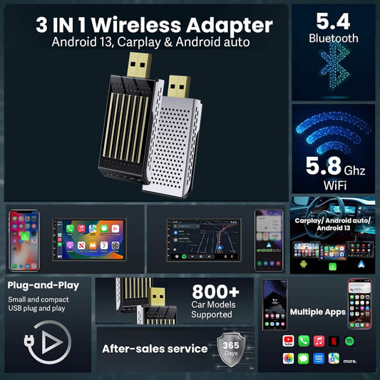 Carlizem 3 in 1 Wireless Ai Box with Wireless Carplay/Android Auto/YouTube/Netflix/Prime Video Bluetooth 5.3 Android 13