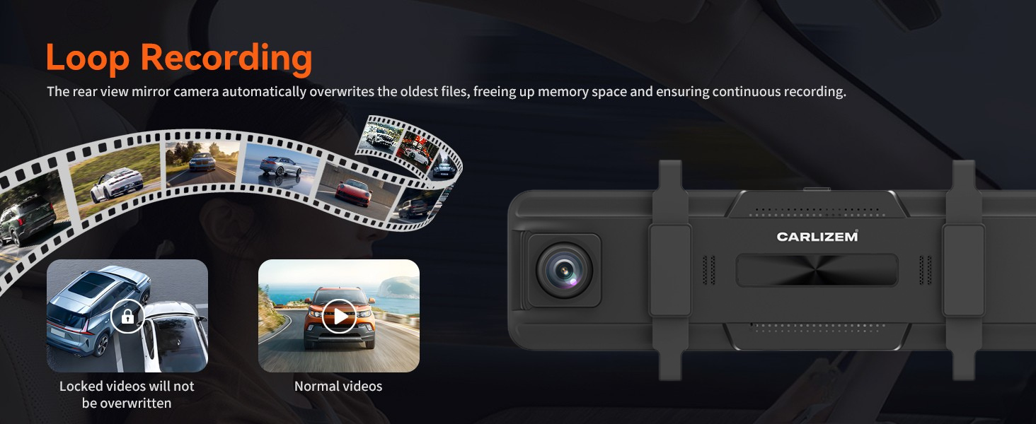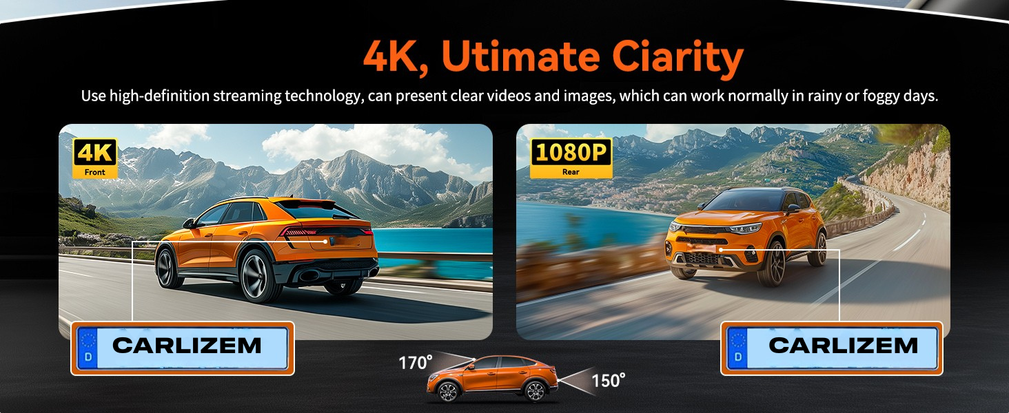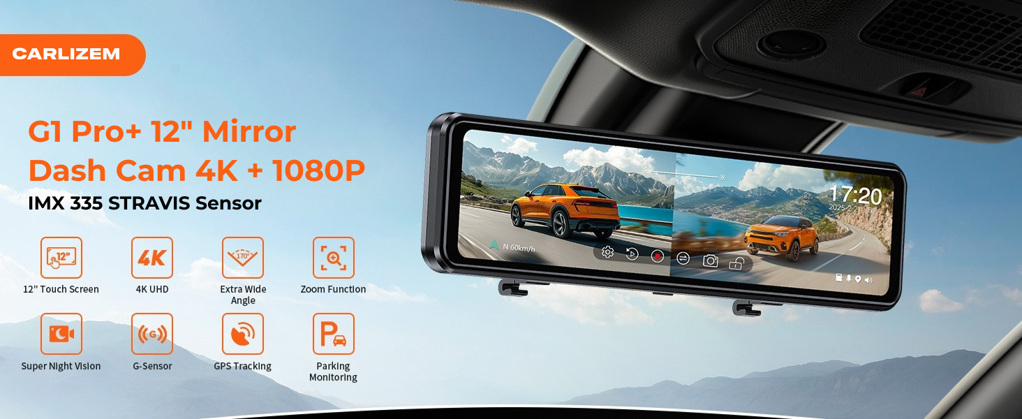 Carlizem 12" 4K Sony STRAVIS IMX335 Rear View Mirror Dash Cam for Car Front and Rear with GPS, ADAS, BSD, Touchscreen, 5.8GHz WiFi, G-Sensor, Loop Recording G1 Pro