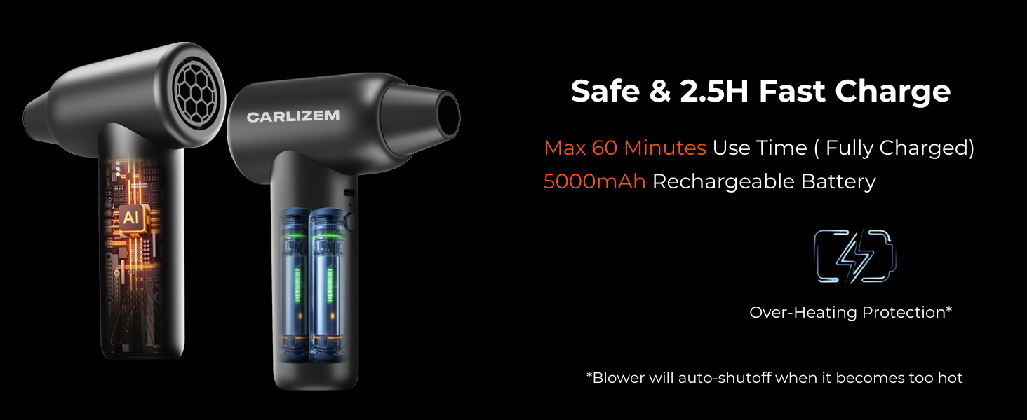 Carlizem TurboJet 300X Powerful Air Duster 150000 RPM 7500 Mah Cordless Air Blower Machine Brushless Motor| Air Blower for Dust Cleaning, Car, PC, Home | Type-C Rechargeable Mini | Portable Leaf Blower for Cleaning